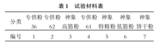 1.1 试验材料试验材料均为郑州海嘉食品有限公司生产的面粉,其中专供粉36、专供粉62、专供粉61分别为某些食品厂面条专供粉。