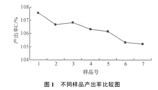 由图1可以看出,总体趋势是随着面粉品质的降低其产出率不断下降,即1#样品的产出率最高,其次是2#、3#样品,6#、7#样品产出率最低,1#样品较6#、7#样品面条产出率高2%左右,即说面粉随着品质的下降其形成结合水的能力下降。