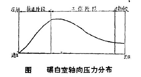 当稻谷由盛料斗进人碾白室后,被辊筒推进齿推送前进。物料在推进过程中,一方面受辊筒元周力的影响沿辊筒径向作旋转运动,一方面在辊筒推进压力下作轴向运动。其运动轨迹构成了一条沿辊筒旋转的螺旋线。物料在行进过程中,受到碾自室机盖、米筛、米刀等的阻力,形成一定的压力,其轴向压力分布由进口端逐渐增加,到推进辊筒和碾白辊筒交界处压力最大,出口端又逐渐降低。