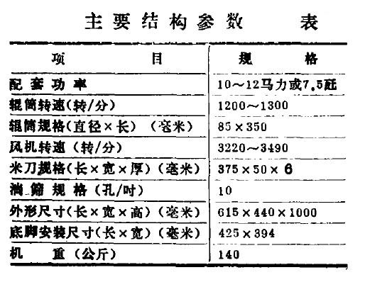 6 NL-8, 5P四分离精米机是在72型精米机的基础上改进设计的。它保留了72型结构比较紧凑,外型较为美观,稻出白脱壳力强,产量较高等优点,同时还克服了整米、碎米、粗壳、细糠混杂,必须人工进行筛选的缺点,降低了来温,提高了出米率,防尘也有所改善。与72型相比,每加工100斤谷多出1 ^- 2斤米和2 ^- 3斤糠,少耗5 - 6度电。与N400, N35农用精米机相比,性能指标也较为先进(见表1,2)e1977年1I月湖北省机械局曾组织有关部门对该精米机进行了鉴定,现已定型批量生产。
