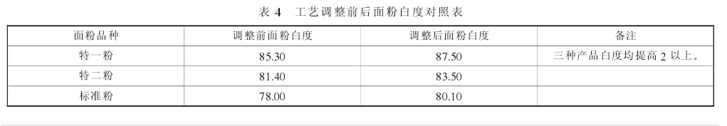 ④每月定期召开两次质量和工艺设备管理会议, 总结上月质管理的经验与不足, 提出下月质量管理工作设想计划和整改措施, 做到心中有数, 以稳定面粉白度的目标值。