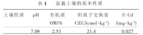 设计和大田采样玉米试材选用富友一号, 盆栽土壤采集于中科院沈阳生态站,采取向空白土壤(基本性质见表 1)中添加外源污染土的形式,将两种土壤均过 准5 mm筛,混合均匀,形成具有不同质量比梯度镉的土壤,镉 质 量 比 分 别 处 理 为 0、0.1、0.3、0.5、1.0、3.0、5.0、10.0 mg/kg,每个梯度设 4 个重复。 在营养钵中进行玉米盆栽试验, 每盆装土 15 kg. 2007 年 4 月,将底肥与盆土按规定用量混合均匀,每盆播种 5 粒,14d 后间苗,每盆留苗 1 株,整个生长过程用自来水浇灌,并追肥(尿素)两次,2007 年 9 月收获。