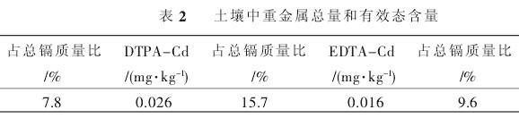 由表 2 可以看出,有效态镉的提取率(有效态含量在总量中所占的百分比) 因使用不同的提取剂而不同。 其中以 DTPA 的提取率为最高, 可达 15.7%(以数据平均值计算), 这与它是重金属络合剂有很大的关系;其次,另外一种重金属络合剂 0.05 mol/LEDTA 的提取率为 9.6%,提取能力仅次于 DTPA,排在 4 种提取剂的第 2 位。 1 mol/L NH4OAc 作为一种缓冲剂类型的有效态镉提取剂, 它的提取率为8.4%,提取能力居第 3 位,因为 0.1 mol/L CaCl2属于中性盐类型提取剂,所以它的提取能力较弱,提取率仅为 7.8%.