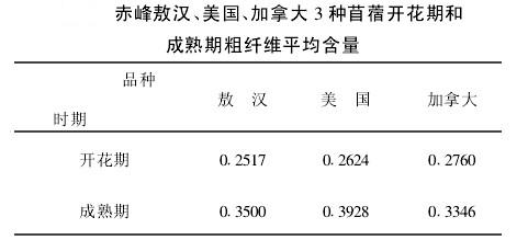 4.1.2 氮磷水平,钾对赤峰敖汉,美国加拿大3个品种苜蓿开花期粗纤维含量的影响: