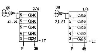 5皮8心2渣2尾,中后路打鼓,三道清粉流程,II B IIIB不分粗细,便于流量调整,IV B分粗细以便于操作管理。工B剥刮率30%一50%,取粉率5%一8% , II B剥刮率50%一55%、取粉率15%18%,心磨:1M ,2M ,3M出粉率50%一55% , 4M6M出粉率35%一40% ,渣磨系统出粉率35% ,尾磨出粉率20%一25% o I B初筛40Z, II B, IIIB, IVBc:初筛48Z.总出粉率76%一78%.主要系统粉路分布见图1,主要物料流量分布见表1.