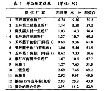 粗纤维作为鉴别鱼粉是否掺杂植物性蛋白或其它填充物的一个重要指标,现今在鱼粉检验中普遍使用。为此,有必要做进一步探讨。